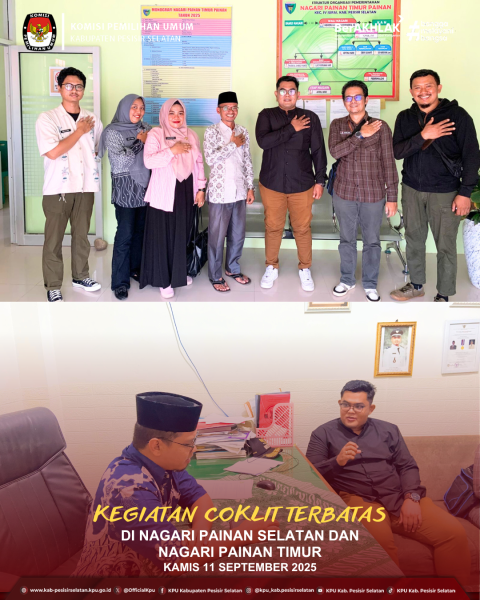 Kegiatan Coktas ini dilaksanakan di Dua Nagari yang berada di Kecamatan IV Jurai yaitu Nagari Painan Selatan Painan dan Nagari Painan Timur dan diikuti langsung oleh Dede Desmana Ketua Divisi Perencanaan Data dan Informasi, Indra Madan Putra Kasubag Perencanaan Data dan Informasi, Operator Sidalih KPU Kabupaten Pesisir Selatan dan didampingi oleh Wali Nagari dan Perangkat Wali Nagari.