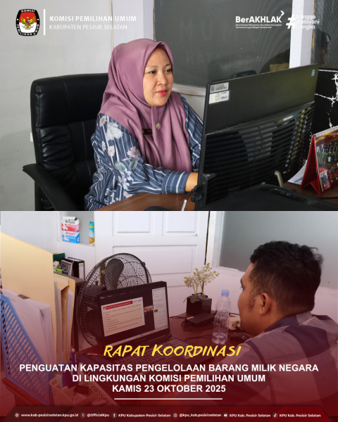 Melalui kegiatan ini, diharapkan seluruh satuan kerja KPU, termasuk KPU Kabupaten Pesisir Selatan, dapat meningkatkan kapasitas sumber daya manusia dalam mengelola aset negara secara akuntabel, transparan, dan berintegritas, sebagai bentuk dukungan terhadap penguatan tata kelola kelembagaan yang baik.