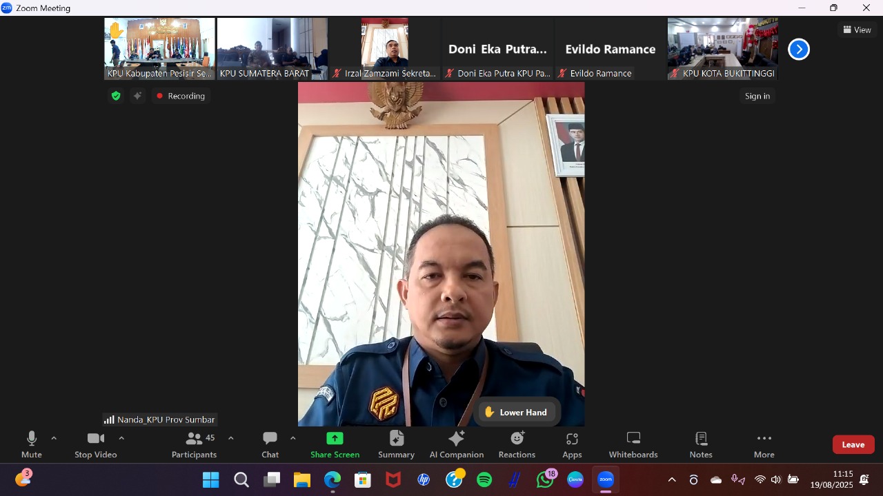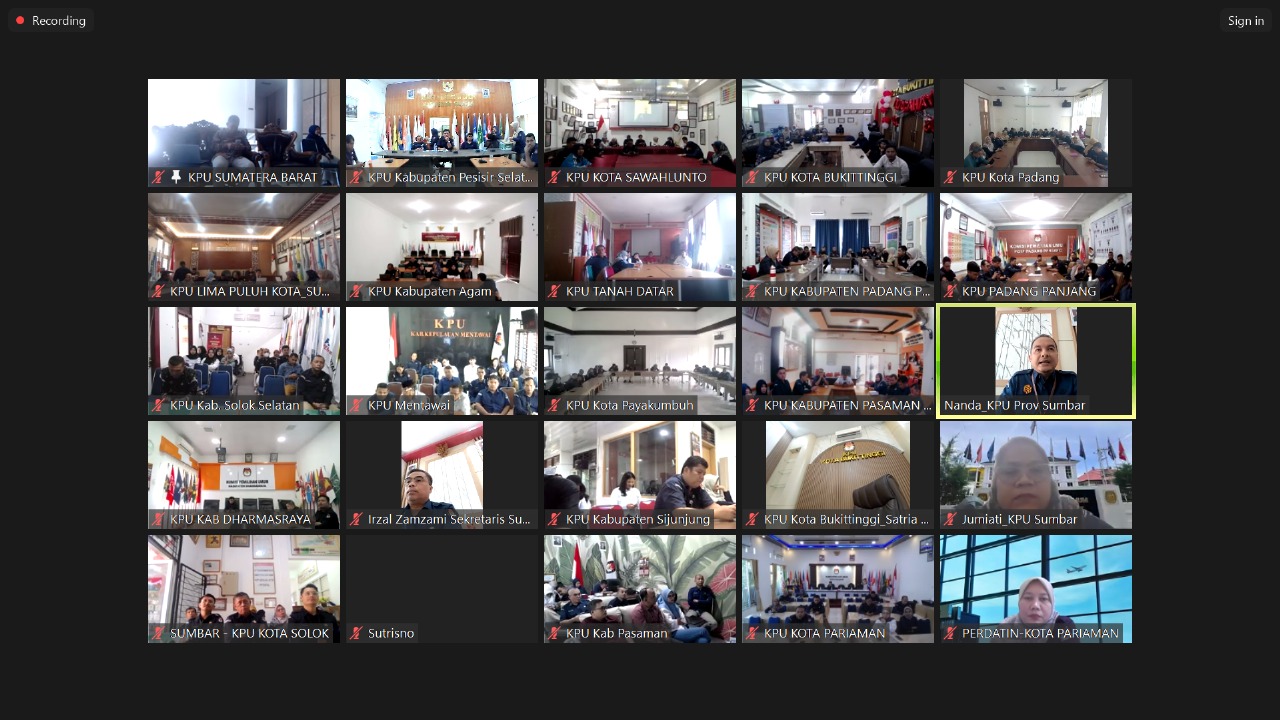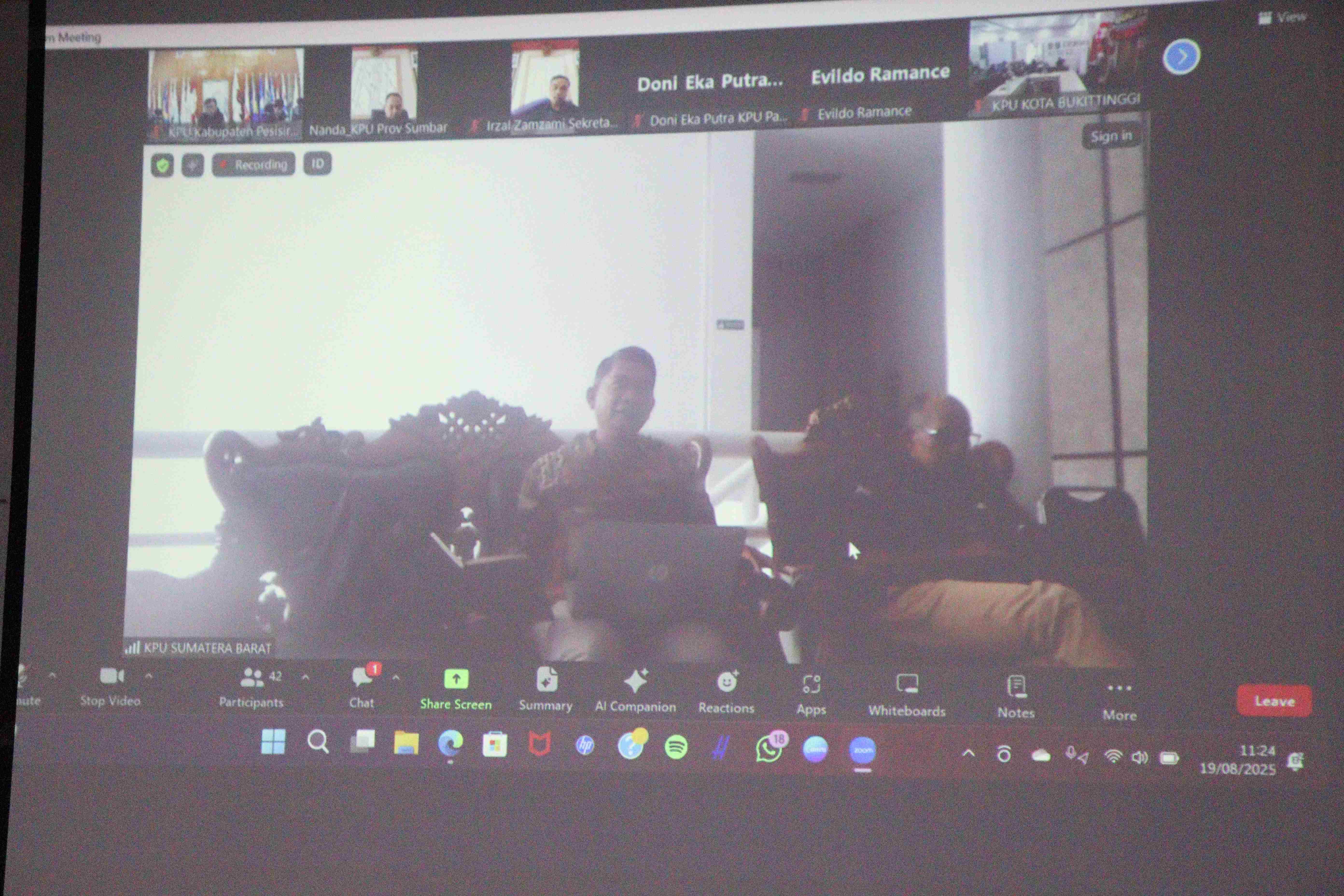Painan – Komisi Pemilihan Umum (KPU) Kabupaten Pesisir Selatan mengikuti Rapat Internalisasi Pembangunan Zona Integritas menuju Wilayah Bebas Korupsi (WBK) dan Wilayah Birokrasi Bersih Melayani (WBBM) yang diselenggarakan oleh KPU Provinsi Sumatera Barat secara daring pada Selasa, 19 Agustus 2025. Kegiatan ini berlangsung mulai pukul 09.00 WIB hingga selesai.