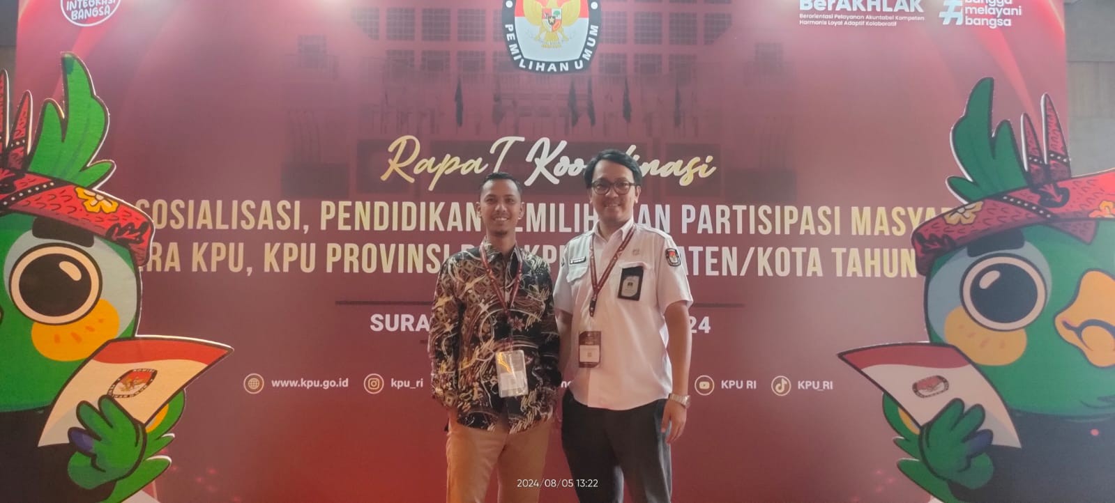 Surabaya. Komisi Pemilihan Umum Republik Indonesia mengadakan Rapat Koordinasi, Pendidikan Pemilih dan Partisipasi Masyarakat dengan KPU Provinsi/KIP Aceh dan KPU Kabupaten/Kota pada tanggal 4 s.d 6 Desember 2024 bertempat di Vasa Hotel, Kota Surabaya.