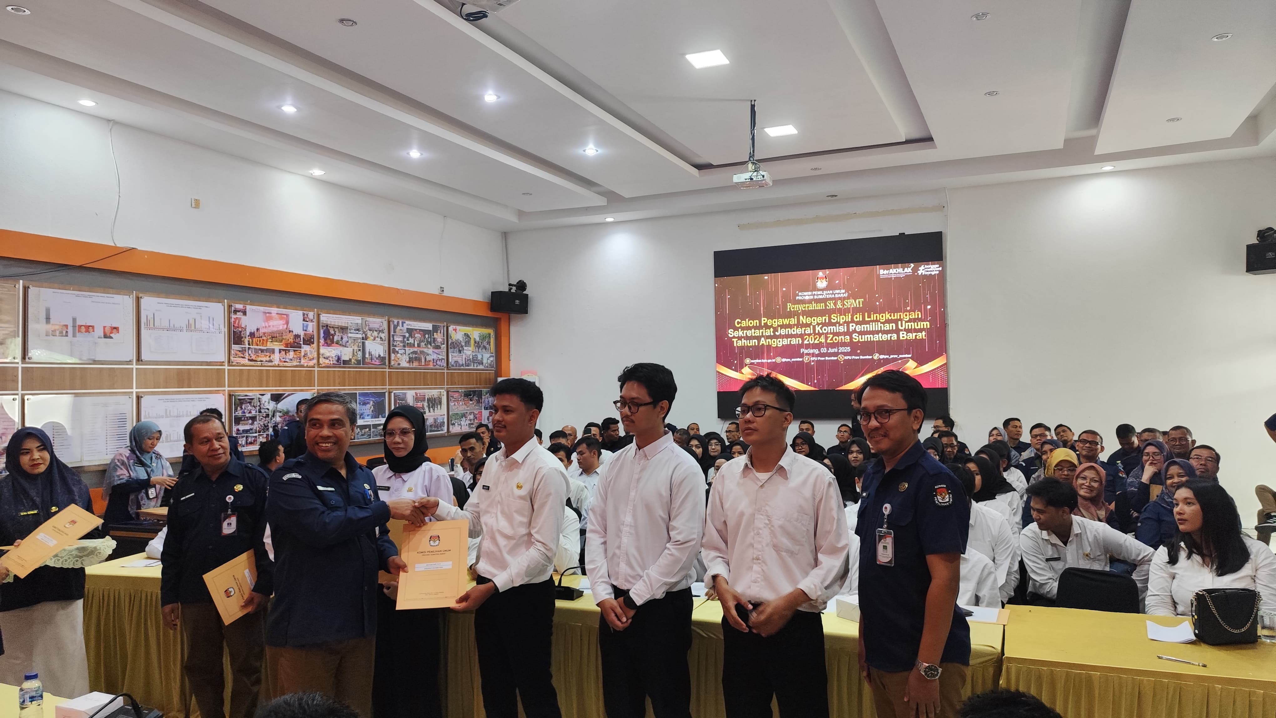 Berdasarkan Pengumuman Komisi Pemilihan Umum Republik Indonesia Nomor 123/SDM.03-Pu/04/2025 tentang Panggilan Melaksanakan Tugas Calon Pegawai Negeri Sipil di Lingkungan Sekretariat Jenderal Komisi Pemilihan Umum Tahun Anggaran 2024, terdapat 5 (lima) Orang Calon Pegawai Negeri Sipil (CPNS) di tempatkan di KPU Kabupaten Pesisir Selatan. (Humas)