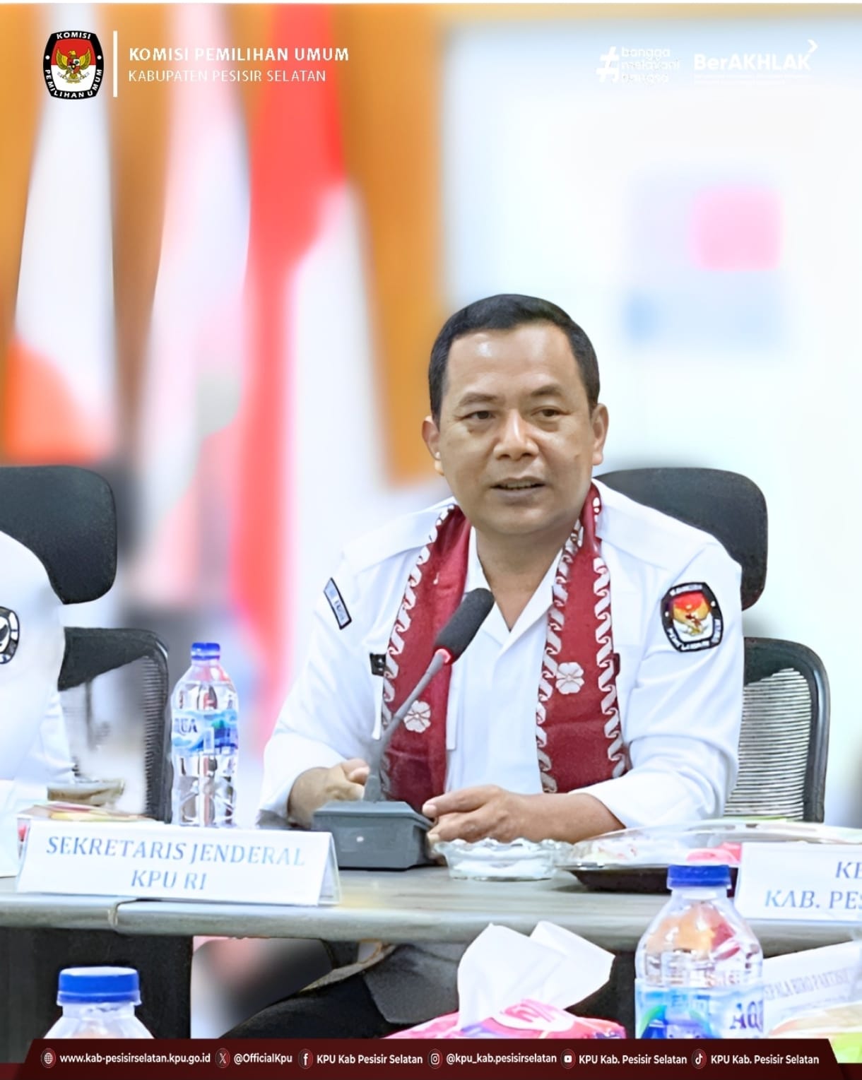 Painan – Sekretaris Jenderal Komisi Pemilihan Umum Republik Indonesia, Bernad Dermawan Sutrisno, melakukan kunjungan kerja ke KPU Kabupaten Pesisir Selatan pada hari Kamis, 10 Juli 2025, dalam rangka Penguatan Kelembagaan Pasca Penyelenggaraan Pemilu Dan Pemilihan Tahun 2024.