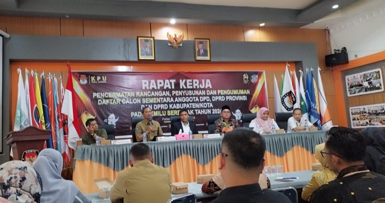 Padang - KPU Provinsi Sumatera Barat mengadakan Rapat Kerja Pencermatan Rancangan, Penyusunan dan Pengumuman Daftar Calon Sementara Anggota DPD, DPRD Provinsi dan DPRD Kabupaten/Kota Pada Pemilu Serentak Tahun 2024 bertempat di Aula Kantor KPU Provinsi Sumatera Barat pada hari Kamis, 3 Agustus 2023.
