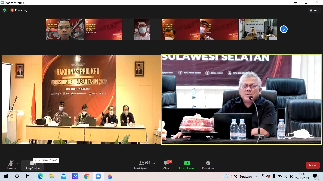 Painan — Komisi Pemilihan Umum (KPU) RI menyelenggarakan Rapat Koordinasi Nasional Pusat Pelayanan Informasi dan Dokumentasi (PPID) dan Workshop Kehumasan KPU se-Indonesia, Rabu sampai Jumat (27-29 Oktober 2021) melalui offline dan zoom meeting. Rakornas tersebut dihadiri oleh Anggota KPU Provinsi dan Kabupaten/Kota se Indonesia yang membidangi divisi sosialisasi dan pendidikan pemilih, Sekretaris KPU Kabupaten/Kota se Indonesia, Sub.Koordinator Teknis dan Hubungan Partisipasi Masyarakat KPU Kabupaten/Kota se Indonesia dan operator yang mengelola website dan media sosial KPU Kabupaten/Kota se Indonesia.