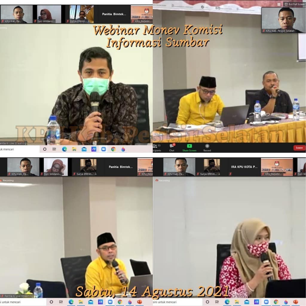 Painan — Komisi Pemilihan Umum (KPU) Kabupaten Pesisir Selatan mengikuti Webinar Bimbingan Teknis Monitoring dan Evaluasi Keterbukaan Informasi Badan Publik Tahun 2021, Sabtu (14 Agustus 2021) jam 07.00 – 11.30 WIB. Webinar tersebut diselenggarakan oleh Komisi Informasi Sumatera Barat dan dihadiri oleh KPU Kabupaten/Kota se-Sumatera Barat, Badan Pengawas Pemilu (Bawaslu) Kabupaten/Kota se-Sumatera Barat, dan partai politik se-Sumatera Barat. Narasumber webinar tersebut merupakan anggota Komisi Informasi Sumatera Barat, antara lain: Adrian Tuswandi, Arif Yumardi, dan Tanti Endang Lestari. Webinar bertema “Monitoring dan Evaluasi Keterbukaan Informasi Badan Publik sebagai Upaya Perwujudan Sumatera Barat yang Informatif”. Adrian Tuswandi yang menjadi narasumber pertama memaparkan materi tentang “Mengoptimalkan Layanan Informasi Publik Melalui PPID”. Menurutnya, di era reformasi saat ini, keterbukaan informasi dijamin oleh Undang-Undang Dasar 1945, yang mengandung tiga prinsip, yaitu: transparansi, partisipasi, dan akuntabilitas. “Undang-Undang Keterbukaan Informasi Publik dibangun atas dasar transparansi, partisipasi, dan akuntabilitas”, ujar Adrian. Lebih lanjut ia menjelaskan bahwa badan publik terdiri dari: Pemerintah (Lembaga Eksekutif), Legislatif dan Yudikatif, Lembaga penyelenggara Negara, Organisasi Non Pemerintah (dapat dana APBN/APBD, sumbangan masyarakat, dan/atau luar negeri), Partai Politik, dan BUMN/BUMD “Artinya, setiap badan publik yang penganggarannya berasal dari keuangan negara, maka wajib terbuka kepada publik, karena ia punya tanggung jawab kepada publik”, kata Adrian. Komisi Informasi Sumatera Barat juga mengingatkan badan publik, khususnya KPU, Bawaslu, dan partai politik se-Sumatera Barat untuk membuat Daftar Informasi Publik (DIP) dan mengklasifikasikannya ke dalam empat kategori, antara lain: informasi wajib disediakan dan diumumkan, informasi tersedia setiap saat, informasi atas dasar permintaan, dan informasi yang dikecualikan. Anggota KI Sumbar lainnya Arif Yumardi menyampaikan materi berjudul “Standar Operasional Prosedur dan Penyusunan Daftar Informasi Publik”. Dijelaskannya, bahwa kewajiban badan publik, antara lain: Menyediakan dan memberikan Informasi Publik, Membangun dan mengembangkan sistem informasi dan dokumentasi secara baik dan efisien; Menetapkan peraturan mengenai standar prosedur operasional layanan Informasi Publik; Menetapkan dan memutakhirkan secara berkala seluruh Informasi Publik yang dikelola; Menunjuk dan mengangkat PPID untuk melaksanakan tugas dan tanggung jawab serta wewenangnya. “Standar operasional prosedur (SOP) nya menurut Pasal 16 dan 17 Peraturan Menteri Dalam Negeri Nomor 3 Tahun 2017, di antaranya adalah: SOP penyusunan Daftar Informasi Publik, SOP Pelayanan Permohonan Informasi Publik, SOP Uji Konsekuensi, SOP Penanganan Keberatan, dan SOP Fasilitasi Sengketa”, kata Arif. Narasumber ketiga Tanti Endang Lestari menyampaikan materi terkait “Alur Penggunaan E-Monev 2021” dan “Mekanisme Monitoring dan Evaluasi Keterbukaan Informasi Badan Publik Tahun 2021”. E-Monev merupakan aplikasi berbasis jaringan yang digunakan oleh KI Sumbar sebagai salah satu instrumen dalam memonitor dan mengevaluasi keterbukaan informasi di setiap badan publik di Sumatera Barat. Adanya situs e-monev yang bisa di akses di: emonev.kisb.sumbarprov.go.id akan semakin memudahkan badan publik untuk mengisi indikator-indikator yang dinilai dalam penilaian keterbukaan informasi badan publik di Sumatera Barat. Di samping itu, bagi KI Sumbar juga akan memudahkan dalam memonitor dan mengevaluasi serta menilai keterbukaan informasi badan publik. “Komisi Informasi Pusat menjadikan Sumatera Barat sebagai salah satu pilot project keterbukaan informasi di Indonesia. Sehingga kita berharap agar seluruh badan publik di Sumatera Barat pada monitoring dan evaluasi keterbukaan informasi badan publik tahun 2021 ini bisa berpredikat sebagai badan publik yang informatif”, harap Tanti.(*/lthf)